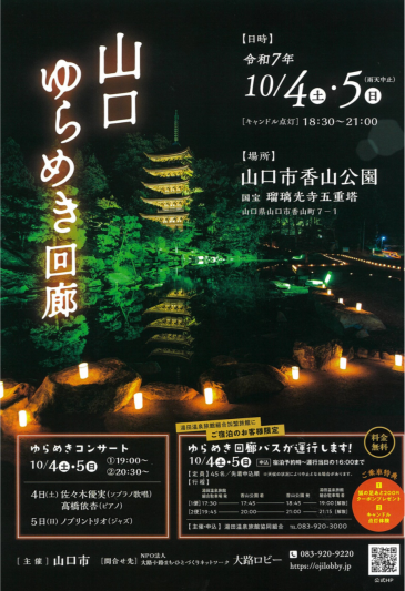 山口市にあります国宝瑠璃光寺五重塔のある香山公園内にて、特別イベントが開催されます。